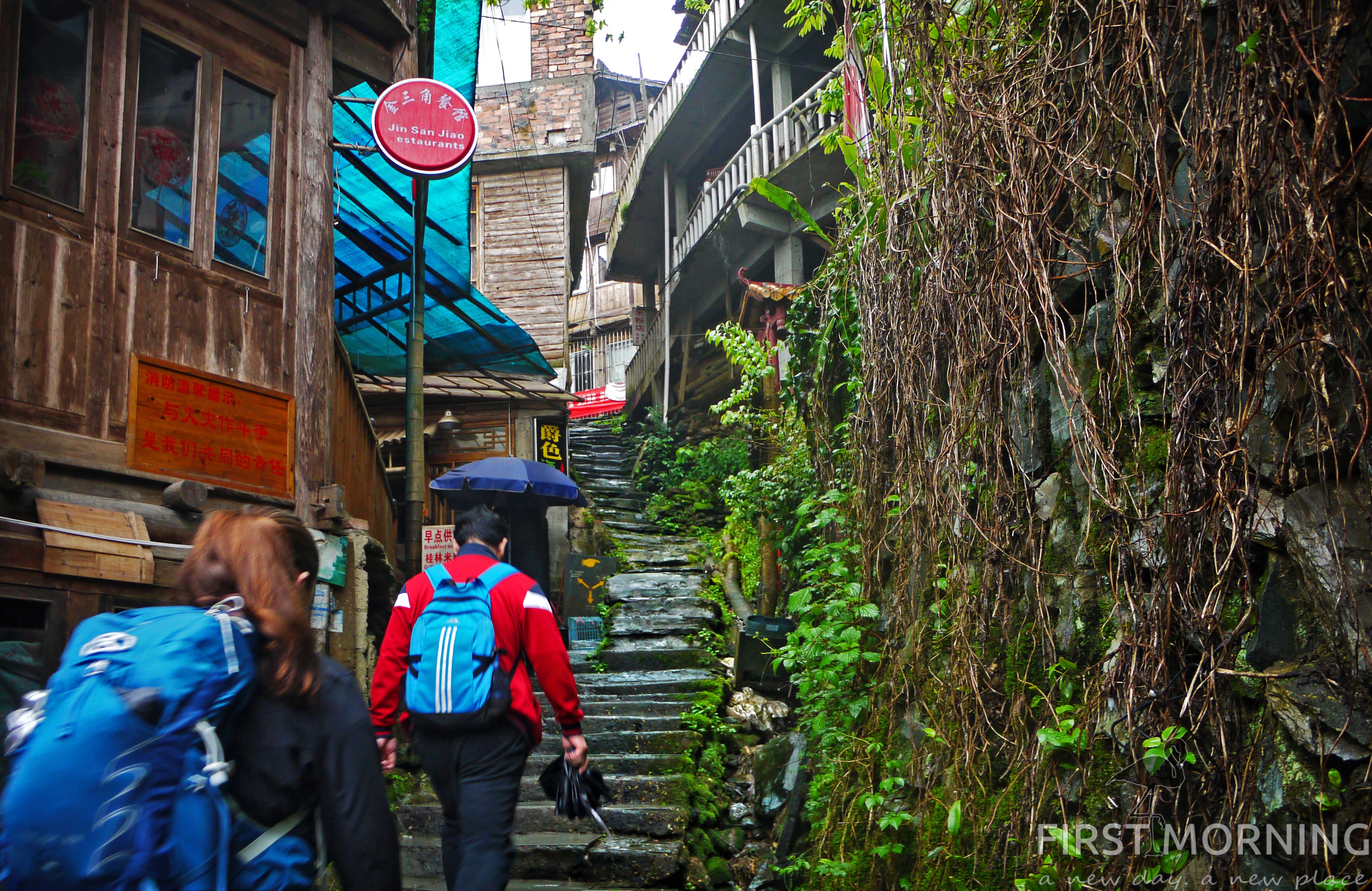 As you cannot drive inside the scenic area, you need to park your car in the Ping’an Parking, and after buying your ticket, you need to walk about 800 metres, then turn left and go across a wooden bridge. Continue to climb the steep flag stone steps into Ping’an Village for 600 metres, then choose the right side path and go straight about 200 metres to find Longji One Art Hotel.