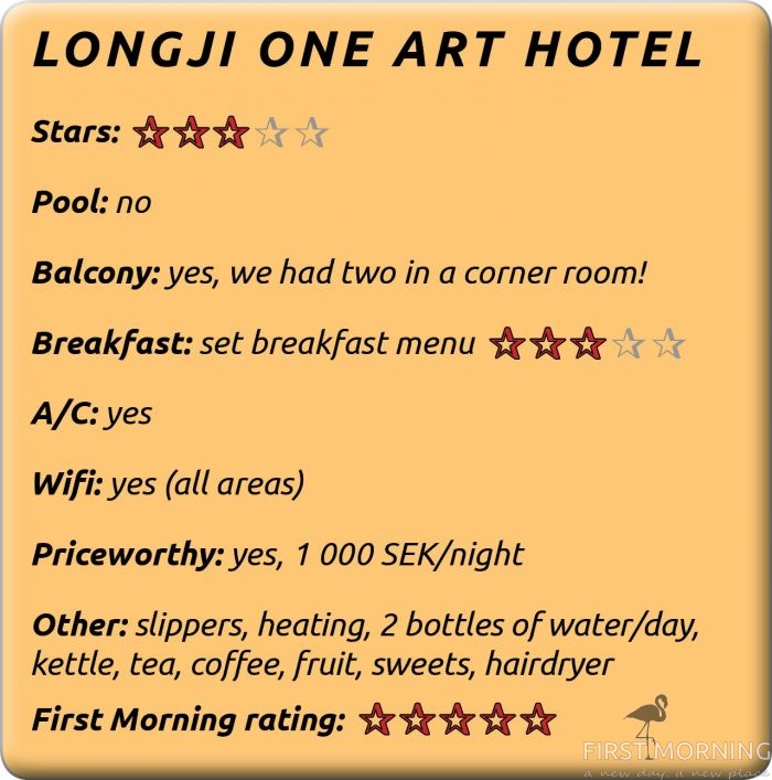 This could be one of the coziest hotels we have ever stayed at. From the moment we enter Longji One Art Hotel, put our hiking shoes in our own wooden shoe box and put on a pair of slippers, there is a contagious, positive ambiance that fills our minds and stays with us during our two nights in Ping’an Village. This is the place for relaxation.