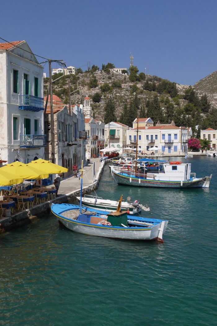 Från hamnen går en båttur till den lilla grekiska ön Kastellorizo, population 430. I öns enda by, Megisti, strosar vi omkring i den 40-gradiga hettan, bestiger en liten husbeklädd kulle för utsiktens skull tills jag upptäcker att överallt finns burkar med ormgift utställda. Då går vi raskt ner igen och sätter oss under ett parasoll i hamnen och tar en läsk. Jag känner att jag har inget som helst behov av ormskådande just nu.