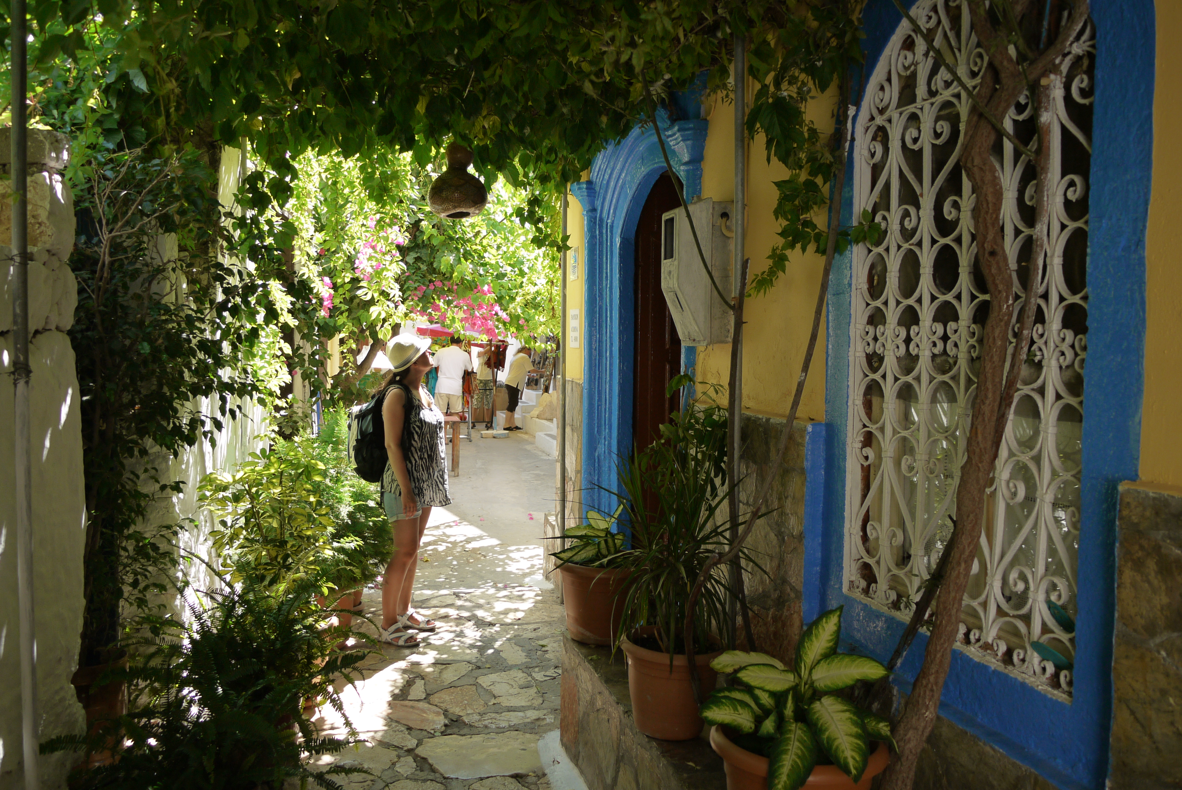 Vårt hotell är inget märkvärdigt, men det ligger väldigt vackert precis vid vattnet och på 10 minuter är man i byns centrum. Vi får rummet högst upp och måste bestiga x antal trappor och upparbeta x antal svettdroppar innan vi når ett vindsrum med snedtak som Pda slår huvudet i rätt frekvent. Vi försöker byta rum, men får ingen vidare respons, ”chefen är inte här just nu”, så till slut orkar vi inte bry oss längre. Utsikten från balkongen är förmodligen hotellets bästa, en fantastisk vy ut över det djupblå havet och bergen runtomkring, så vi bestämmer oss för att gilla läget och bara njuta av att vi faktiskt är på semester!