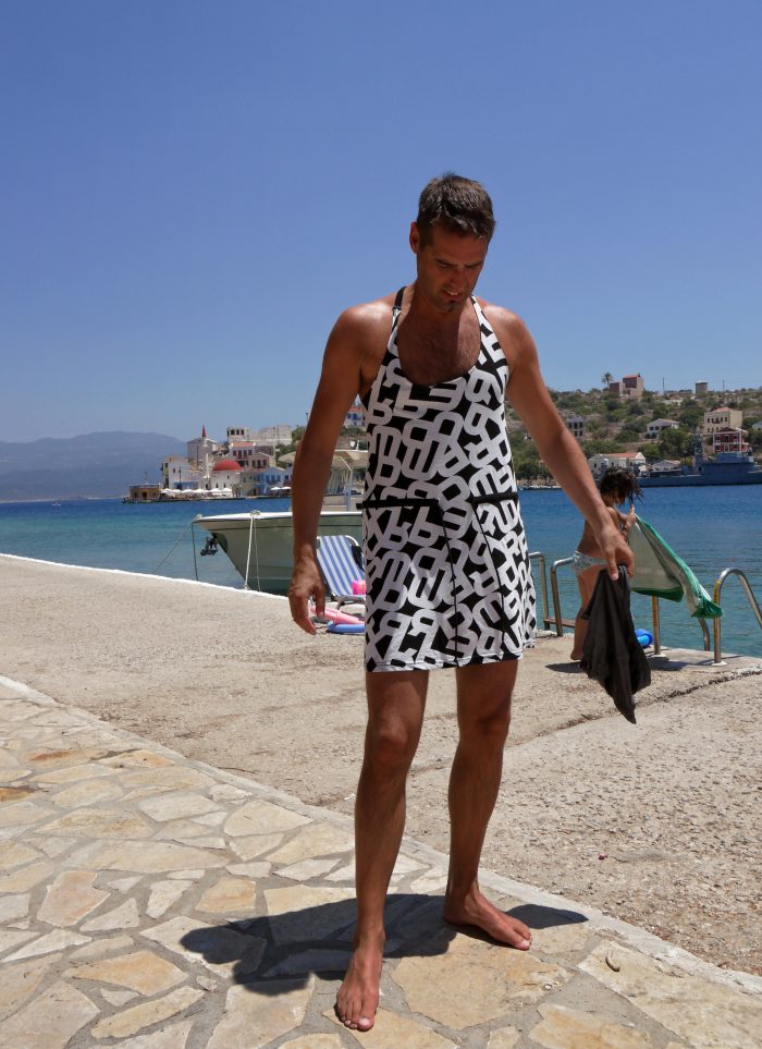 Det fins inga stränder på ön, förmodligen den enda grekiska ö som saknar strand, men vattnet i hamnen är rent och klart. Vi tar ett dopp i utkanten av byn och hamnen, man kan knappt vara i solen längre än 20 minuter innan man behöver bada igen. Kastellorizo måste vara det varmaste stället jag någonsin varit på. Som i helvetet, fast i paradiset.