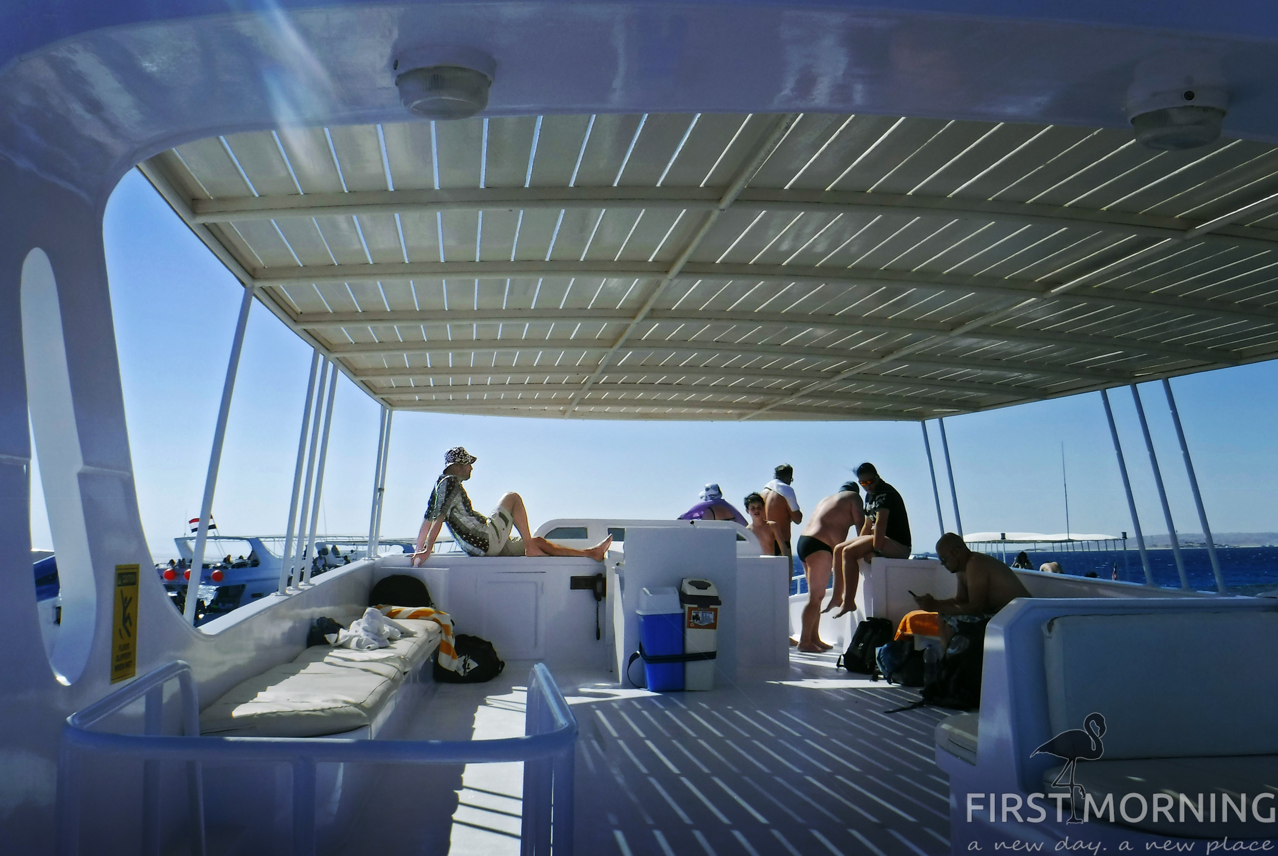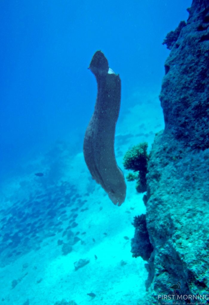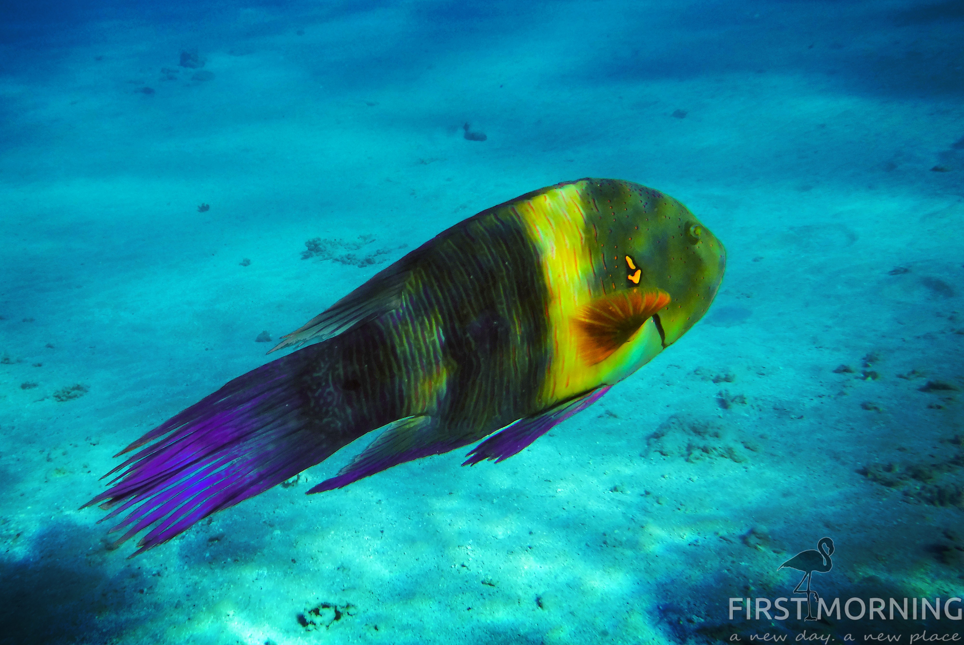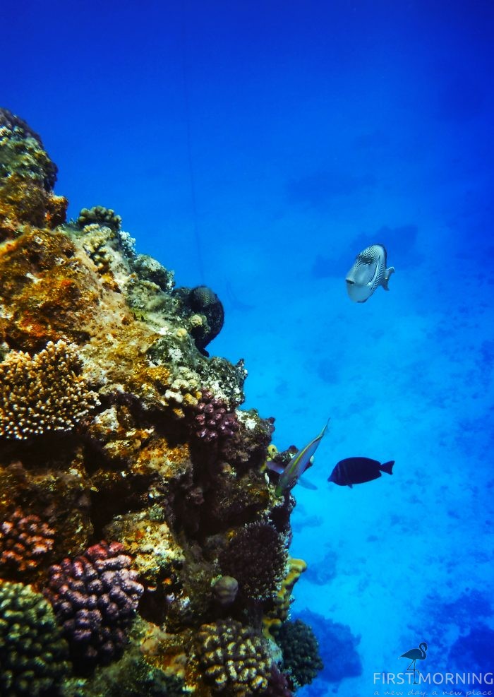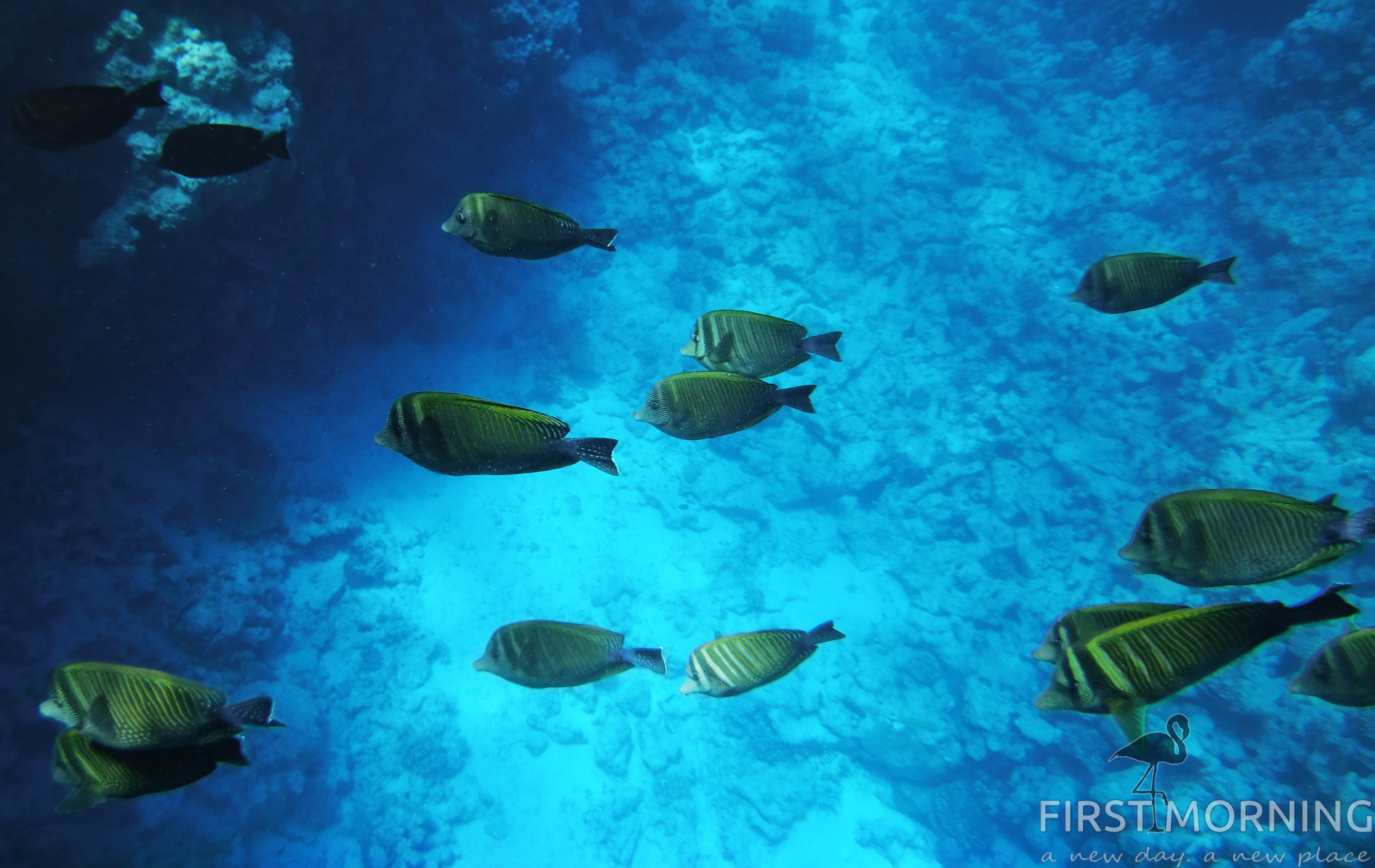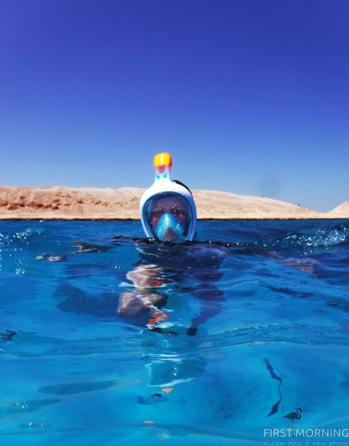 Så när som på en snorkelutflykt i bukten, är vägen mellan Hurghada och Makadi Bay det enda vi ser av Egypten. Det är inte det riktiga Egypten förstås, men efter att ha varit skeptiska till att åka till detta land överhuvudtaget under många år, så är det faktiskt det enda vi mäktar med under denna resa. Jag har velat se pyramiderna sedan jag som barn läste en bok om hur man balsamerar mumier, ja nu är det ju inte själva mumien man balsamerar, men ni fattar, men det blir inga pyramider. De ligger för långt bort och att befinna sig närmare Kairo än så här lockar inte alls. Vi åker ett par veckor efter att 45 kopter mördats av IS i närheten av Kairo, så vi blir vid Röda Havet. Vi åker med Ving till det gigantiska hotellet Makadi Spa Hotel som ligger i Makadi Bay ungefär 30 minuter med bil från Hurghada. Ving kallar dock hotellet för Makadi Beach Resort, vilket det alltså inte heter. Förklaringen är att det aldrig byggdes något spa på hotellet varför Ving valt att döpa om det så att gästerna inte ska luras att tro att det är ett spahotell. Det är det största hotell vi någonsin bott på och det känns som en evighet att traska korridorer fram och trappor ner för att komma till vårt rum. Även rummet är gigantiskt: 46 kvm med en stor terrass, en loungedel med soffa, ett fantastiskt badrum med både dusch och badkar och en riktigt bekväm säng. Det är lyxigt att ha två handfat, en separat toalett och en enorm garderob. Ja, garderoben impar nog mest på mig som tycker det är trevligt att packa upp min resväska och bo in mig på rummet, men kanske mindre viktigt för Pda som låter det mesta ligga kvar i resväskan hela veckan. Det är all inclusive som gäller och då vårt hotell har en åldersgräns på 18 år faller det sig som så att vi får äta på alla de tre hotellen i närheten inklusive restaurangerna på Makadi Mall, men inga gäster från de andra hotellen får äta på vårt. Lyxigt värre! Maten visar sig faktiskt vara riktigt god och det finns enormt mycket att välja på. Vi tycker dock att buffén på vårt eget hotell är den godaste. Vill man äta á la carte, så får man boka bord minst en dag innan. Enkelt sagt kan man alltså äta på olika restauranger vid varje lunch och varje middag, så många ställen finns det att välja mellan. Undvik dock den italienska restaurangen på Waterworld Makadi Beach, den var inget vidare. Stanna dock gärna till för en raki i baren nedanför, det ska vara bra för matsmältningen har jag hört! Det finns tre pooler, varav en infinitypool, och en jacuzzi på hotellet. Tyvärr är poolerna inte uppvärmda, så det blir kylslagna och relativt snabba dopp, men avsvalkad det blir man. Bubbelpoolen är tyvärr inte särskilt bubblig, men den måste testas ändå såklart. Hotellet ligger precis vid vattnet och det går att snorkla direkt från stranden. Först måste man dock gå ut ca 75 meter på vassa koraller och knöliga stenar då det är långgrunt, men sen öppnar revet upp mot djupet och vattnet myllrar av fiskar i alla dess former och färger. Pda har köpt en undervattenskamera som han testar för första gången på denna resa. Till en början är det svårt att få till det, bilderna blir suddiga och färgerna urvattnade. Fiskarna vill heller inte riktigt vara med på bild, de simmar liksom bort från kameran hela tiden! Men snart får han in snitsen och får till en hel del snygga bilder, eller hur? Vår plan är att ha en riktigt slapparsemester, men som regel måste vi ändå alltid åka på minst en utflykt oavsett vart vi reser, annars blir vi lite uttråkade. Vad passar bättre än en snorkelutflykt med båt när vi nu är i detta snorkel/dykningsmecka? Vi köper en utflykt av en Vingguide på plats. Seatrip som den heter kostar 44 € per person och då ingår lunch och snorkelutrustning. Vi blir upphämtade av en minibuss vid hotellet på morgonen. Båten till Giftun Island avgår från hamnen i Hurghada och vi får en egen guide på turen då vi är de enda snorklarna ombord. Av honom köper vi en riktigt fin liten folder med bilder på alla fiskar och blötdjur som finns i Röda Havet. Många av dem kommer vi snart att få se! Det tar ungefär en timme i lugnt tempo att nå öarna. Resten av passagerarna ombord ska dyka och det ingår även ett provdyk utan extra kostnad, men vi väljer att enbart snorkla. Vi har med oss egna masker, men lånar fenor. Jag använder dock inte fenorna, tycker det är så klumpigt att klättra ner för stegen med de där jätteankfötterna. Vi gör tre olika stopp och utflykten varar ända till kl. 17 då det tar lång tid för de olika dykarteamen att ta sig i och ur vattnet. Vädret är perfekt och vattnet håller sig någorlunda lugnt. Jag har köpt en snorklingsmask som alltså är cyklop och snorkel i ett och visar sig vara ett riktigt bra köp. Skönt att slippa hålla koll på både ett immigt cyklop och en kallsupssnorkel och det samtidigt som man känner sig som Darth Vader bakom den där masken. Kostar dessutom bara 299 kr på Decathlon. En bra investering om du liksom mig är lite småfeg i vattnet och alltsomoftast inbillar dig att Hajen kommer emot dig med glappande käftar ur det blåsvarta djupet när du guppar där på ytan i jakt efter en eller annan gullig liten Nemo. Jag vill gärna se botten när jag snorklar, men helt plötsligt öppnar sig ju alltid den där avgrunden under dig och du stirrar skräckslaget ner i totalt mörker. Överrumplar mig varje gång. Nåväl. Pda däremot är en riktigt blötdjur, hans rätta element är vatten. Läs här om när han fridyker ner till det djup där våra vänner tar sitt dykcertifikat på Bohol i Filippinerna. Han får aldrig nog av att snorkla och mången är den gång när jag stått på land eller på en båt och spanat efter den där snorkeln för att till slut känna att nä, nu har han drunknat och vad kul den här semestern blev nu då…, men så dyker(!) han alltid 
