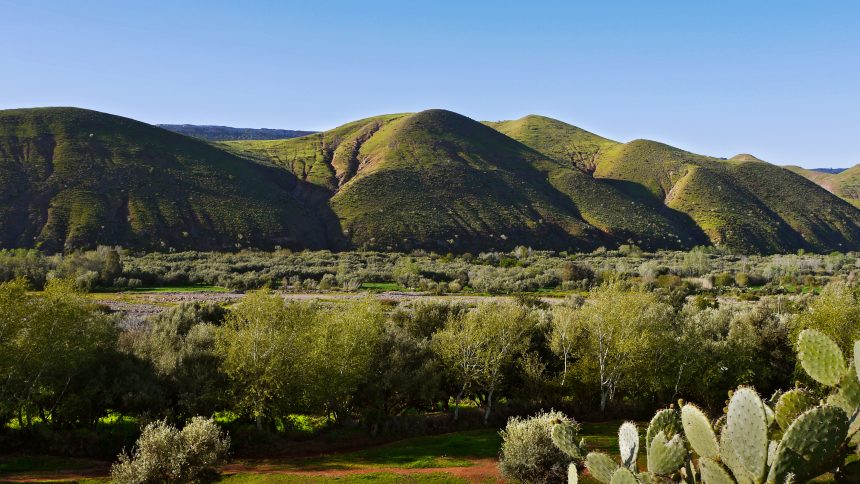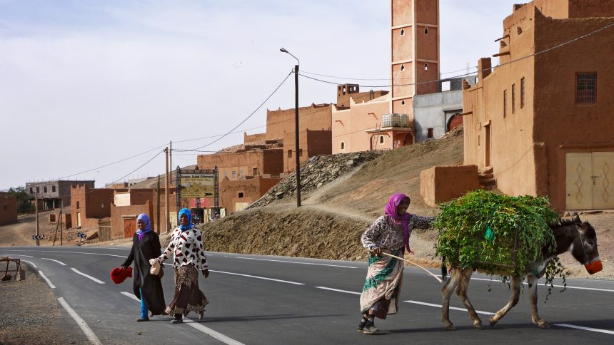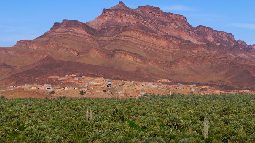 Vi åker nu genom Draa Valley där floden Draa flyter sydöst från Höga Atlas för att sedan vika av västerut och slutligen mynna ut i Atlanten. Vattnet från floden bevattnar enorma palmoaser där man odlar dadelpalmer. I utkanten av staden Agdz stannar vi till vid en utsiktsplats över det magnifika berget Jbel Kissane.