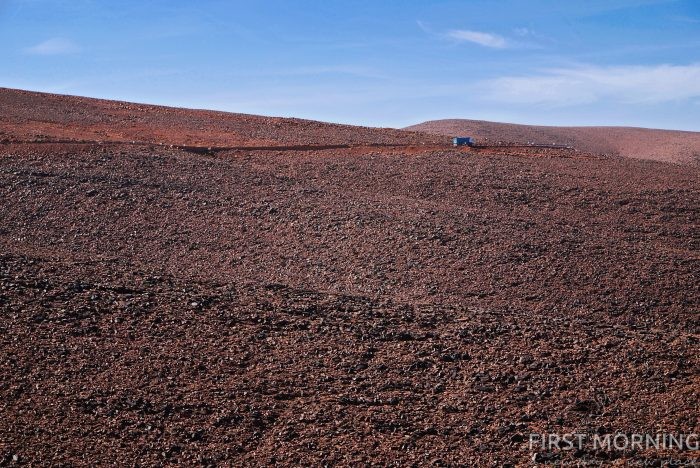Hemfärden går via ett månlandskap utan dess like och är en gammal rutt i Paris-Dakar-rallyt. Hakim kör lite vilse vad det verkar, inte för att han informerar oss om något, han bara manövrerar bilen kors och tvärs över stenöknen.