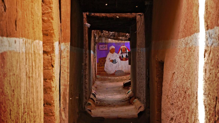 Åtta familjer bor i den gamla fortliknande staden, ksaren, resten i den nya delen av samhället. Vi promenerar upp till toppen av berget och sedan ner genom ett par gator och förbi några kasbahs, men vi ser mest terrakottafärgade väggar och vägar. Vi visas till en man som målar i osynlighetsbläck som blir synligt när han bränner bilden och här och var finns försäljare utposterade. Vår guide är en ung tuareg och Pda vill ha en sådan scarf som han har, men snålar in och köper en oäkta tuaregscarf för 75 kr. Den kommer att fälla lovar guiden och japp, vid första (och enda?) tvätten färgar den av sig så inåt…