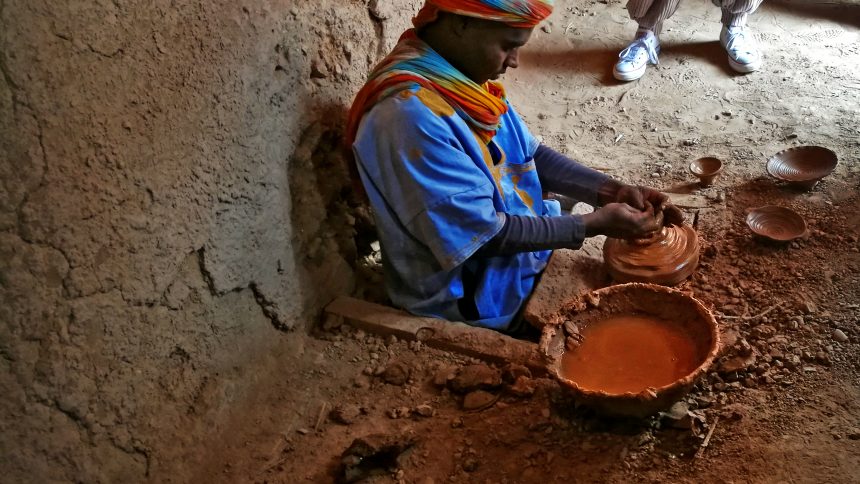 Vi blir visade till en keramisk verkstad där de sitter i ett hål i marken och drejar. Det är svårt att veta autenticiteten i detta. Säkert gick det till så tidigare, men nu känns det mest som en turistfälla. Vi tittar som pliktskyldigast på allt porslin i de allra vackraste färger, men köper som vanligt ingenting. De är också väldigt noga med att poängtera att det absolut inte är något köpkrav, men man känner sig ändå alltid som en ”rik skitstövel till turist ”som aldrig köper något. Vi ger i alla fall oftast dricks till våra guider.