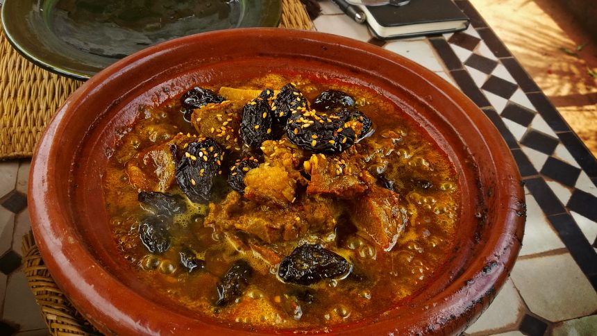Resans bästa mat äter vi på Hotel Kasbah Sahara Services i M’hamid – en trerätters för 130 kr per person där huvudrätten är kött med plommon. Det är även detta hotell som äger tältcampen vid sanddynerna Erg Chigaga som vi är på väg till.