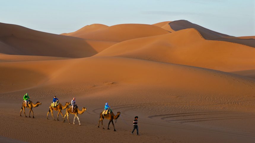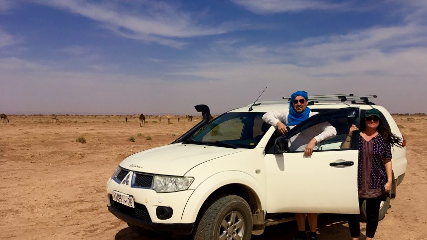 I M’Hamid tömmer chauffören ut luft ur däcken för att göra bilen redo för off road. Vägen slutar nämligen här och sedan bär det av rakt ut i öknen i 60 km innan vi kommer fram till slutdestinationen – Erg Chigagas sanddyner.