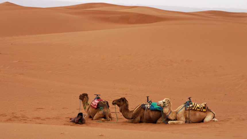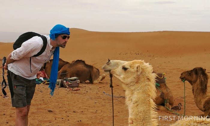 Madeleine står vid sidan av och beskådar kameluppsittningen vilken går galant. Det är endast jag och ett brittiskt par som ska ge oss ut. Det är praktiskt att Madeleine inte ska följa med eftersom hon då istället kan fotografera när den lilla kamelkaravanen sakta vaggar bort mellan sanddynerna mot horisonten. Samtidigt är det förstås tråkigt att hon inte kan följa med på vad som kommer att bli en av höjdpunkterna i mitt liv.