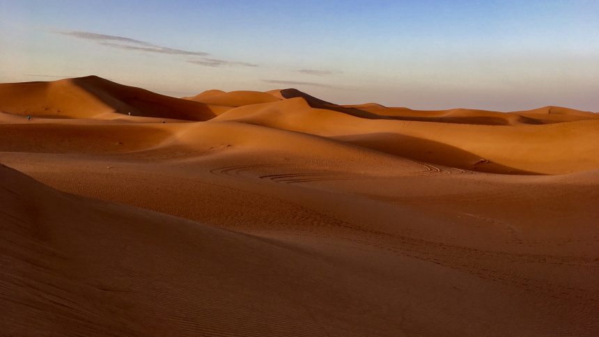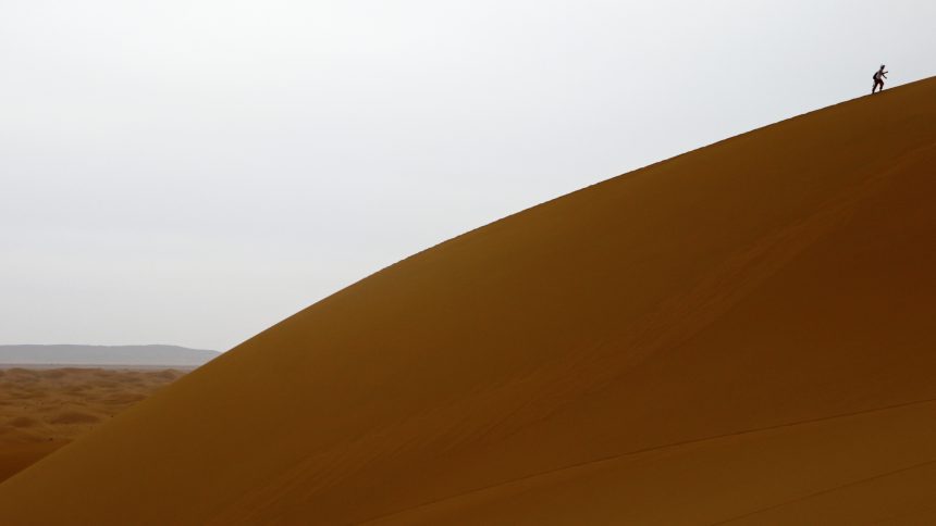 Uppe på toppen sätter jag mig för mig själv och pustar ut. Solen håller sakta på att gå ner i ökendiset och det är totalt vindstilla. Jag blickar ut över sanddynerna som sträcker sig så långt ögat kan nå åt alla håll, lägger in en snus, tar en sipp whiskey som jag tagit med som nödproviant och inser att det här är nog det närmaste gud en ateist kan komma. När jag sitter där så slår det mig hur tyst det är, det är helt, totalt, absolut, kompakt tystnad. Nästan så det gör ont i öronen. Har upplevt tystnad i naturen många gånger men alltid är det nåt litet löv som susar, nån vattendroppe som droppar eller nån jädra mygga som inar. Här är det bara… tyst. Det känns som att det bara är jag i hela världen.