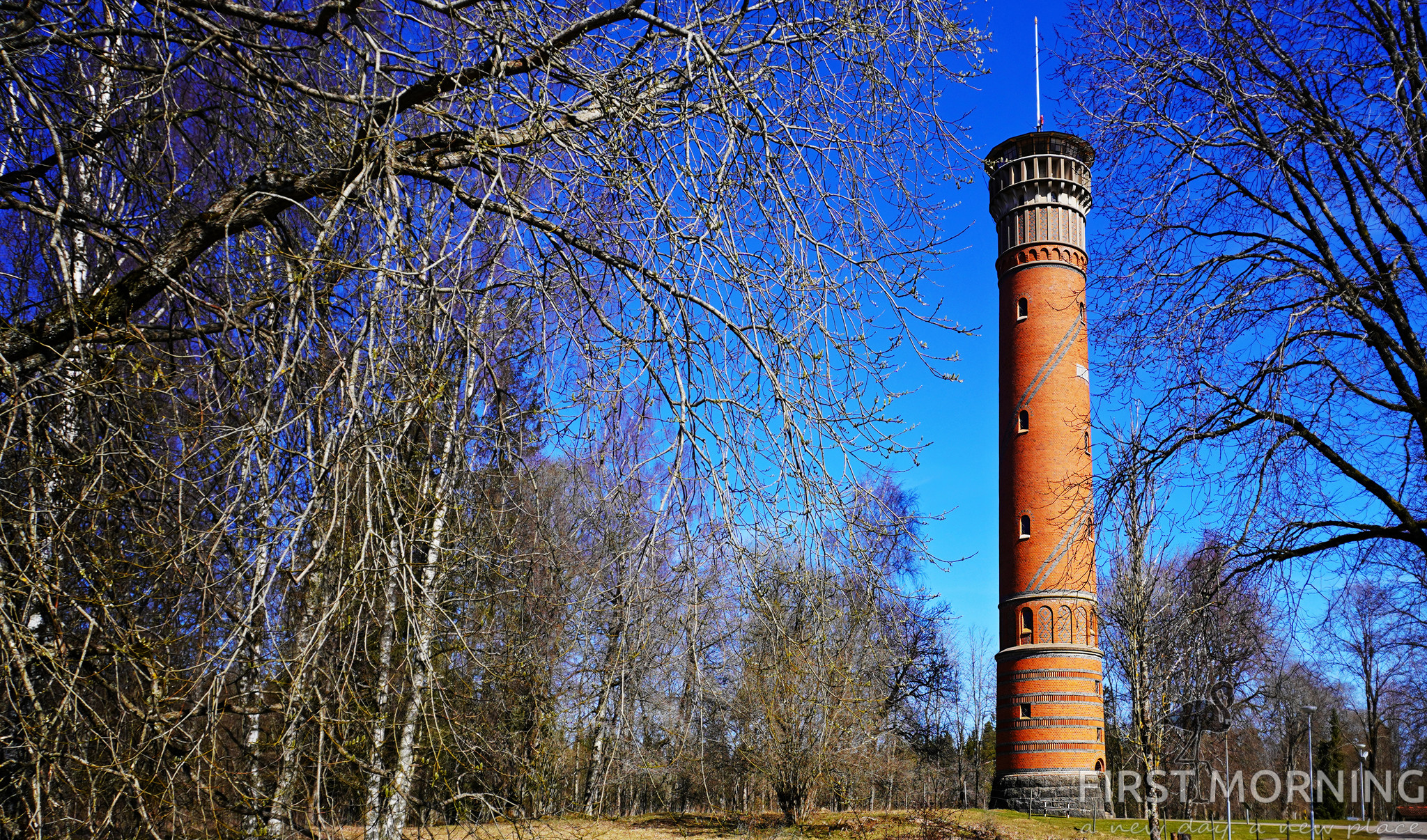 Ovanför stranden ligger Hjos stadspark med de karakteristiska Trävillorna. 1876 grundades en wattenkuranstalt i Hjo och parken anlades med tjusiga trävillor för kuranstaltens gäster. Man kan riktigt se framför sig hur tjusiga damer med vita parasoll flanerade i parken arm i arm med herrar i hög hatt. Krassliga var de, men vattnet gjorde säkert susen för hälsan!