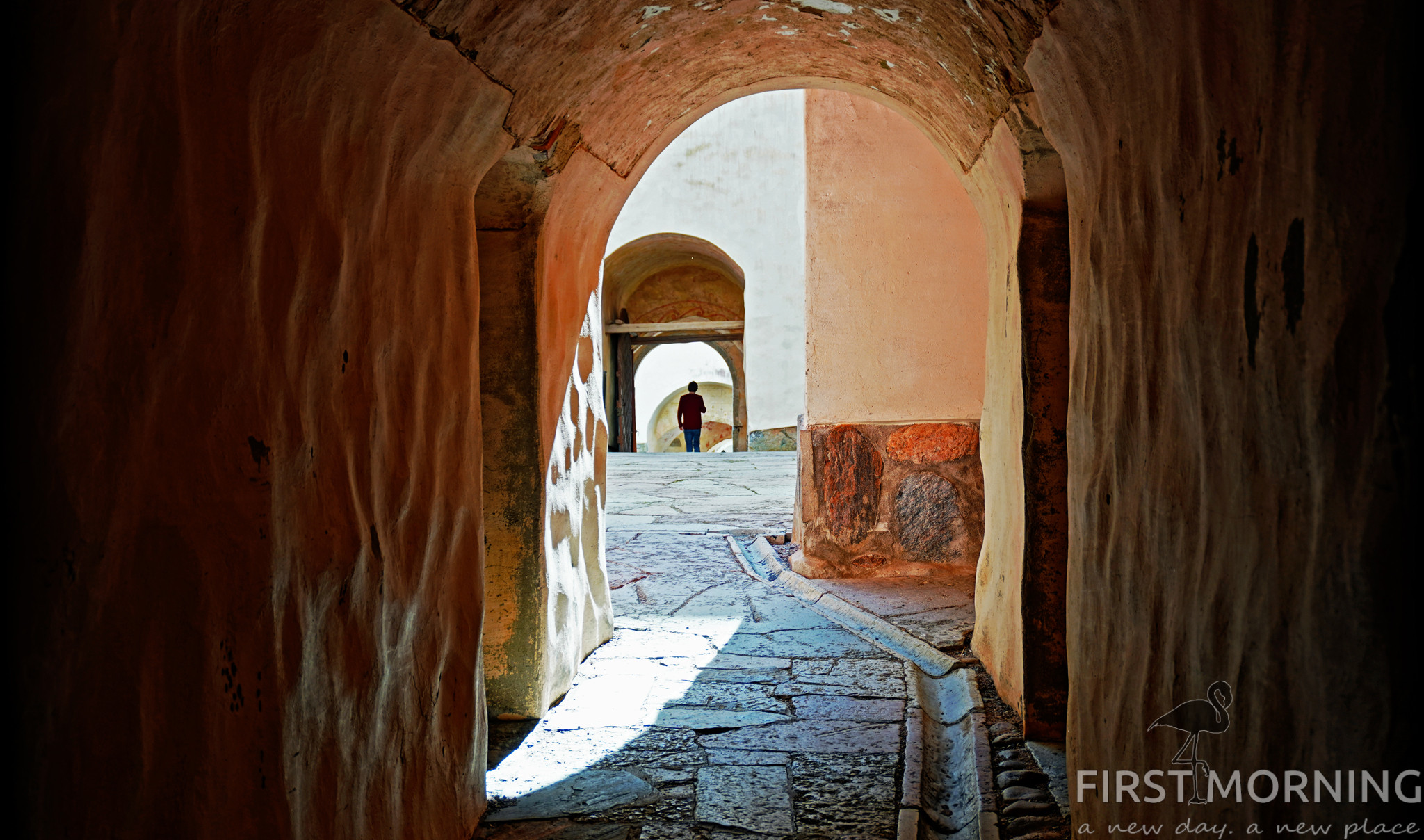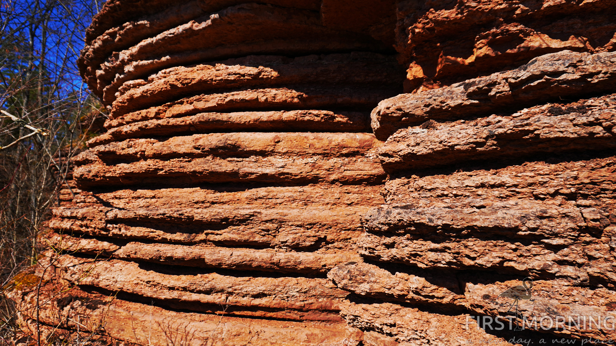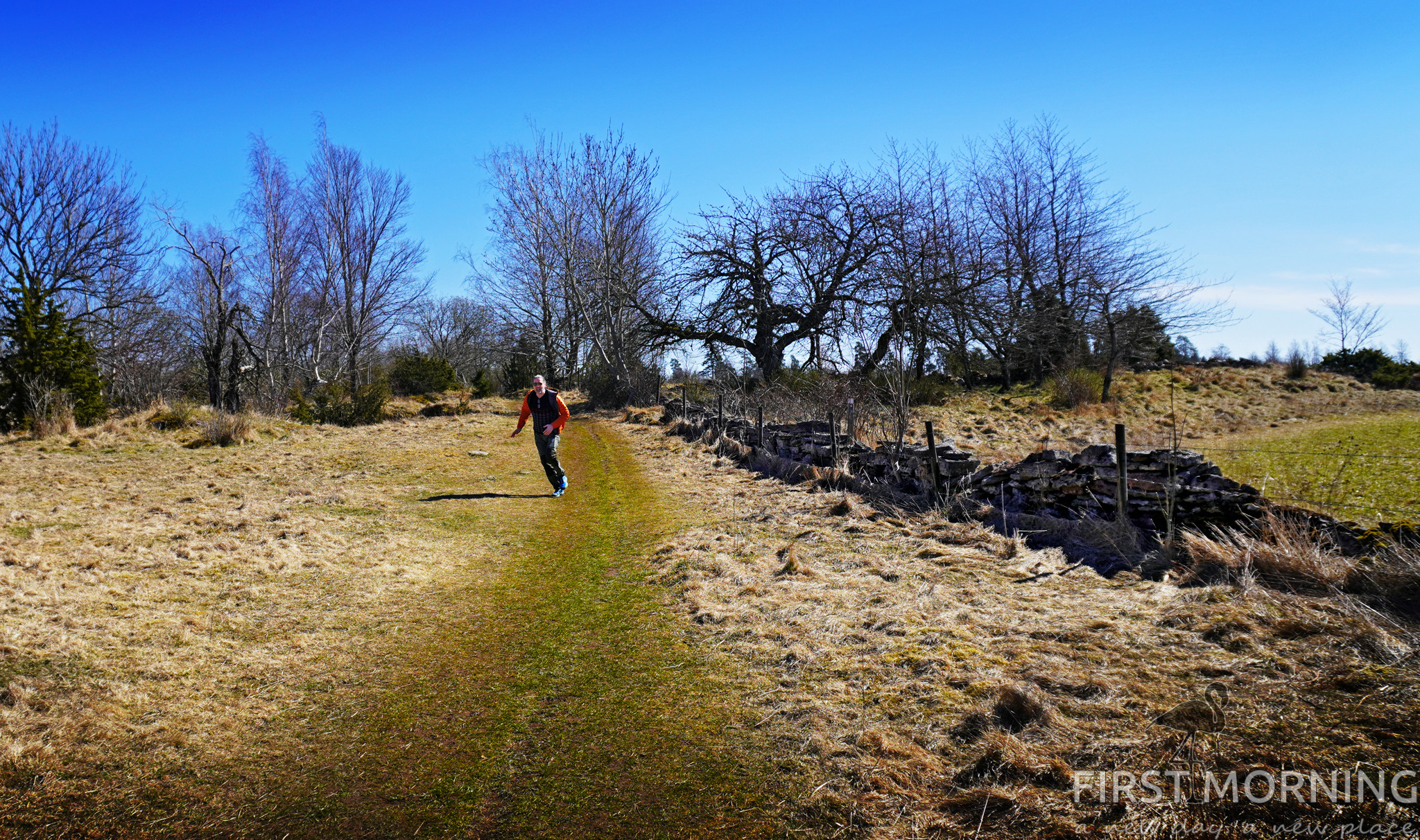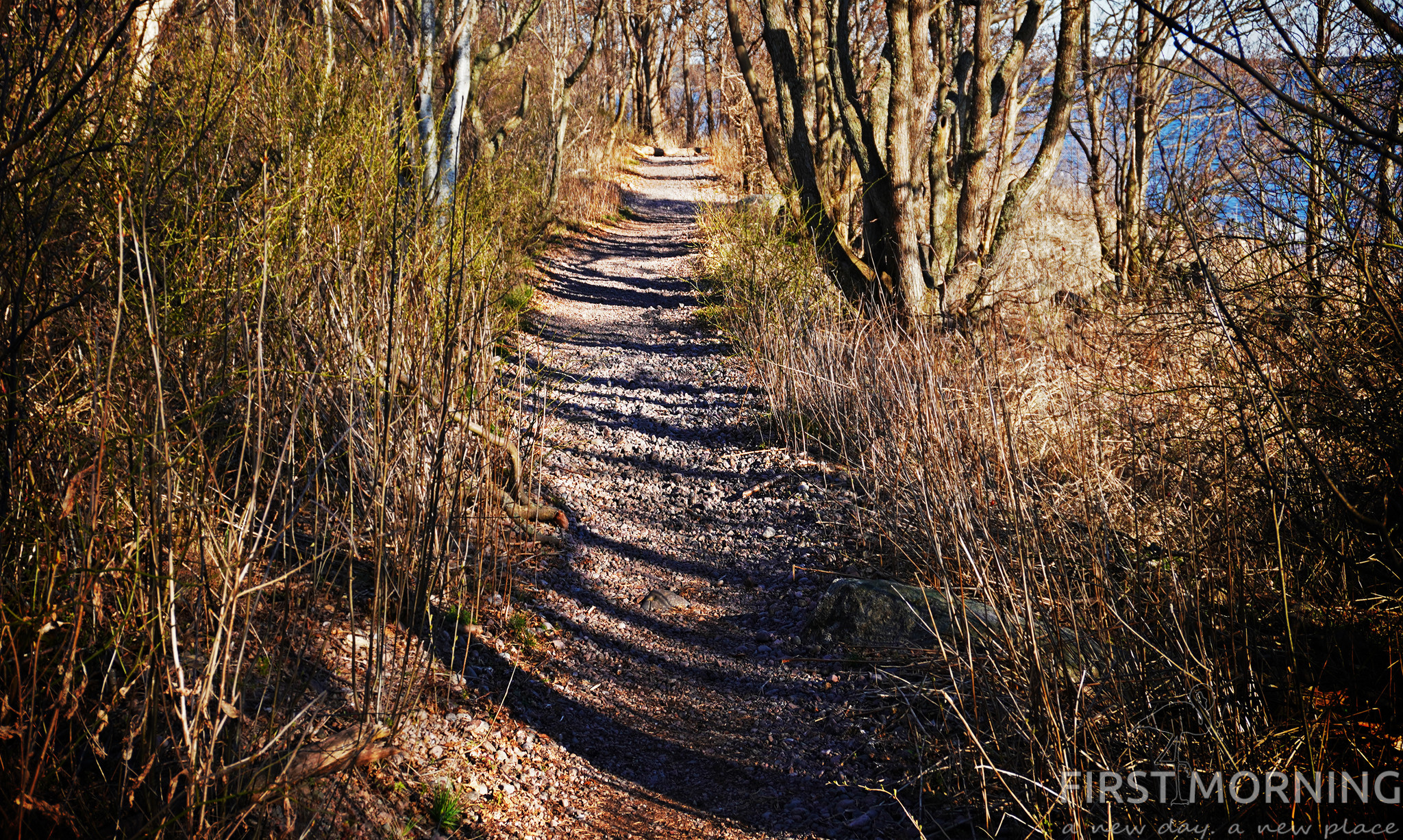 Fastän det är smalt och trots att löven inte slagit ut ännu när vi är här, så ser man inte så mycket av vattnet på vägen ut. Stigen går nämligen i mitten av revet i stort sett hela vägen. Det är en lång men enkel promenad förutom de sista 200 metrarna där man går på rullgrus. Ett steg fram och ett halvt tillbaka…