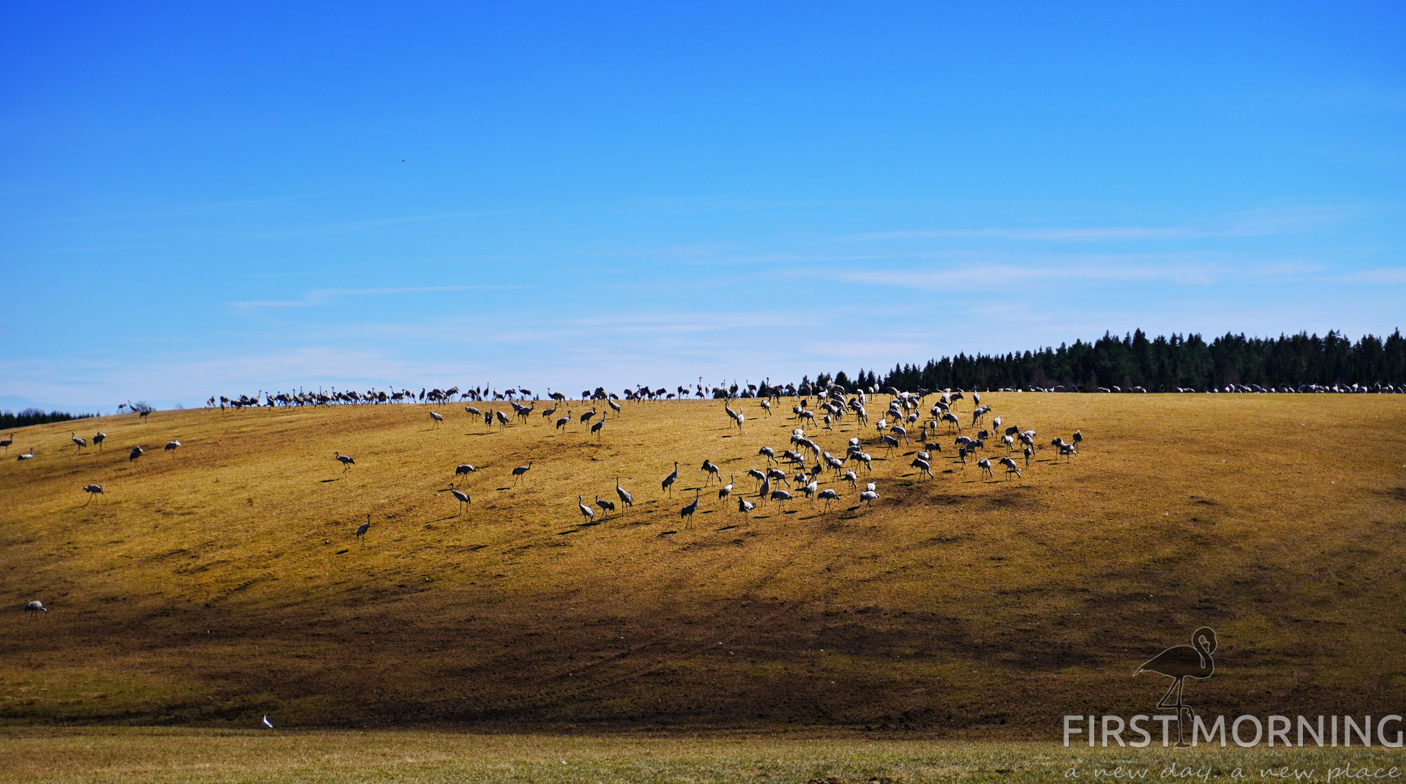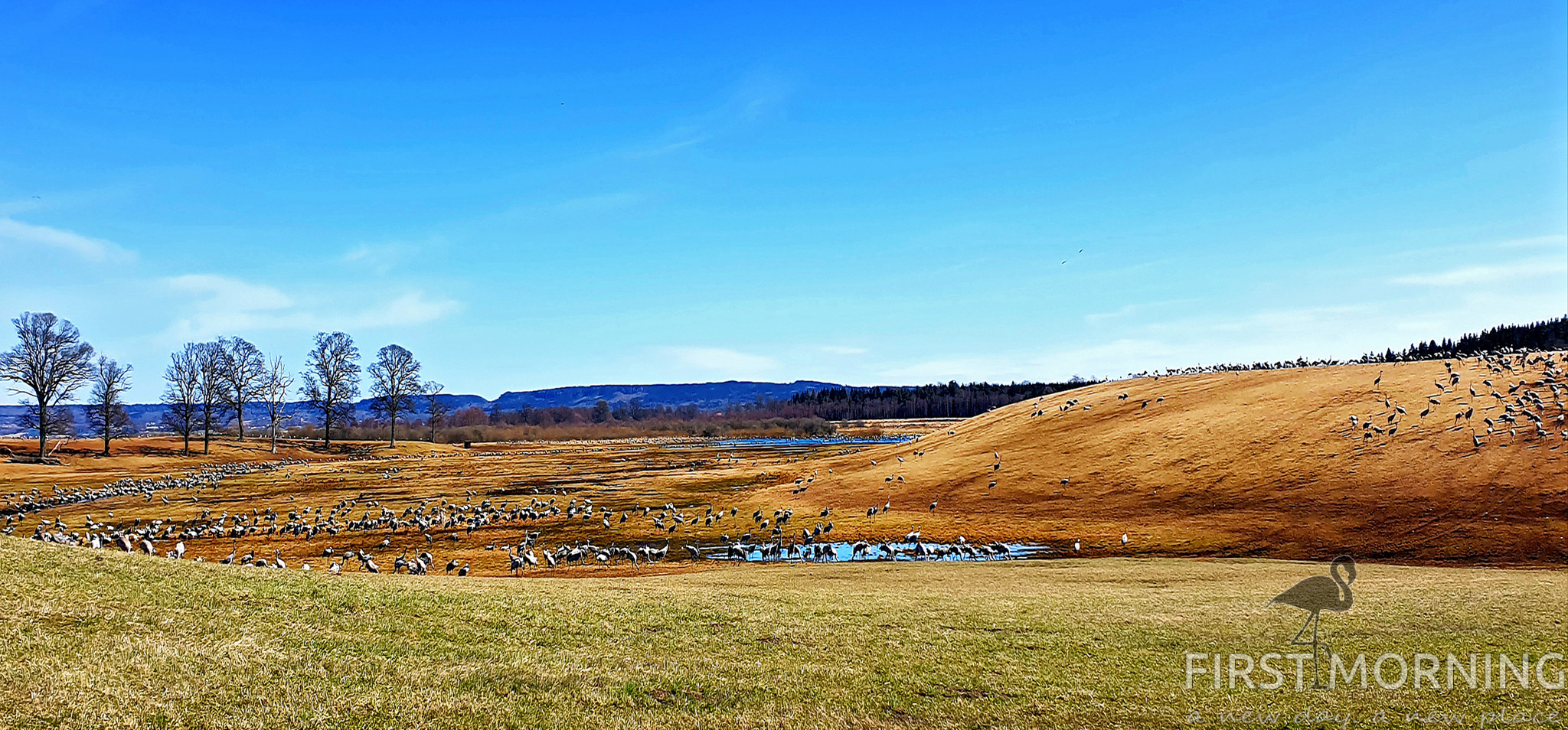 Från parkeringen behöver man bara gå några meter för att plötsligt se ett hav av tranor. Det finns flera olika utsiktspunkter, men vi ser tranor överallt. Det är nästan lite samma känsla som att se vilda djur på den afrikanska savannen. Nästan.