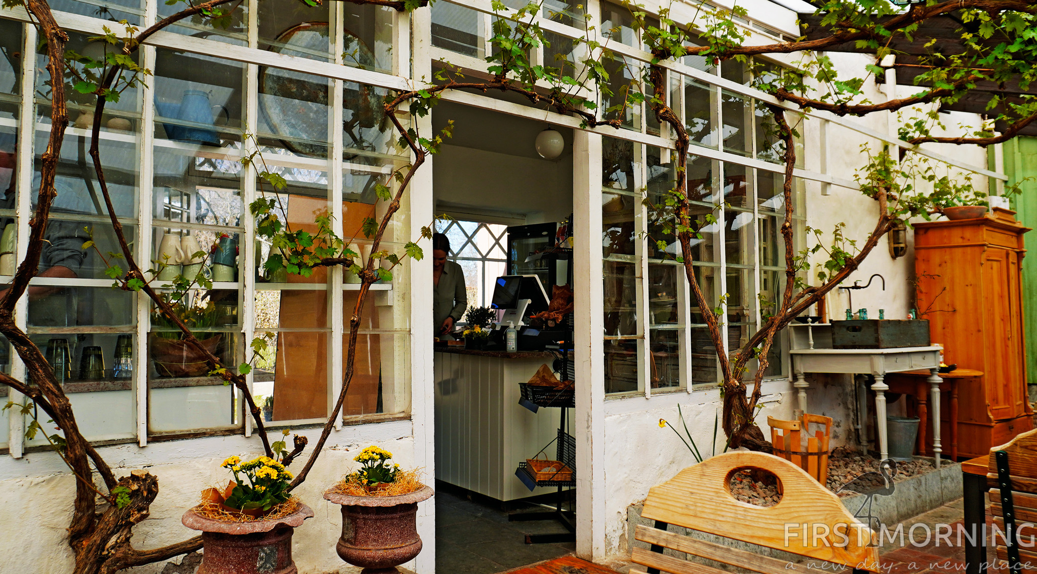 Dags för lunch. När vi är här i påskveckan finns det inte många alternativ när det kommer till mat. Det finns den stora Restaurang Kinnekullegården på berget och ett litet fik vid Medelplana med en kö från helvetet och slut på sittplatser. Och så det alldeles nyöppnade Hellekis Kök & Trädgårdscafé. Det är fullsatt och supermysigt, men som sagt nyöppnat så de hade inte personal och råvaror så det räckte. Men nu har de säkert kört in sig. Rekommenderas för den mysiga atmosfären.
