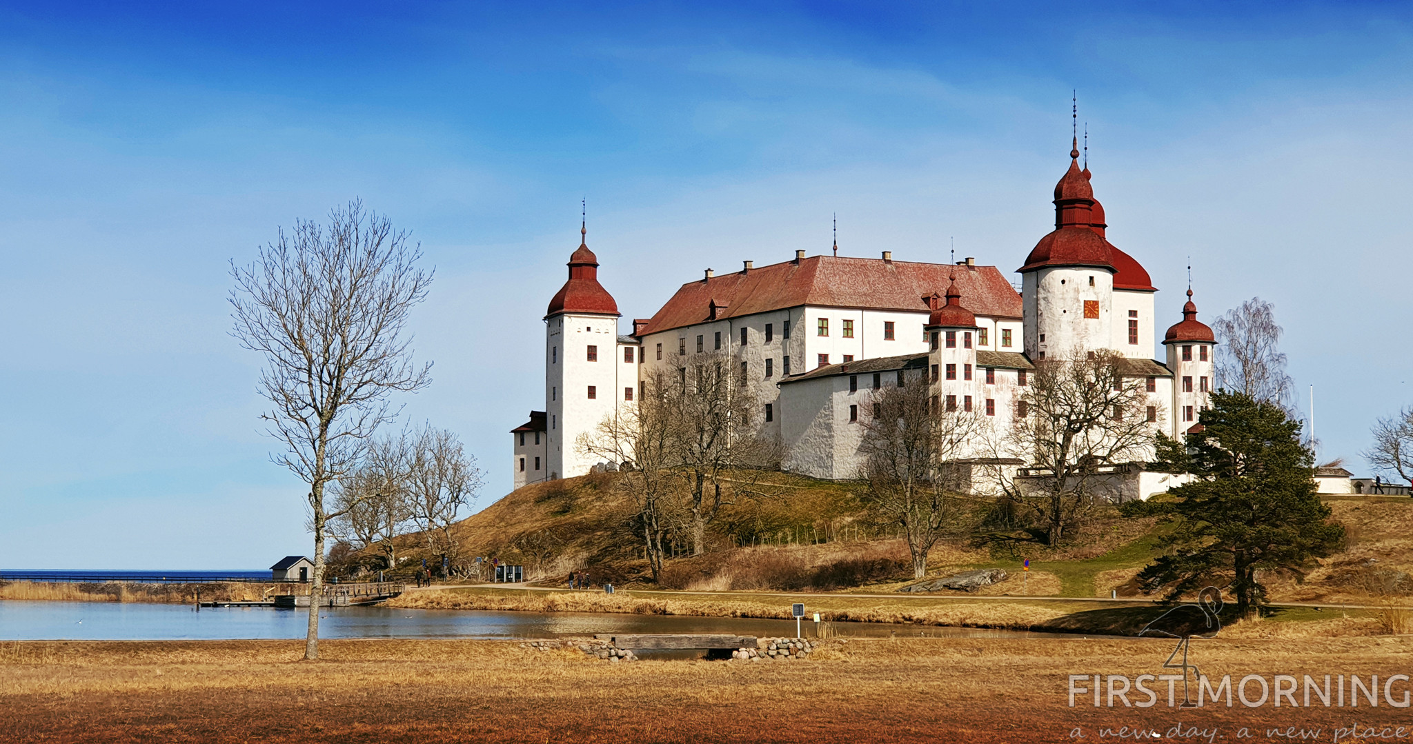 Läckö slott har besökts tidigare, men så här i lågsäsong känner vi att besöket ger mer. Vägen upp mot Läckö slott från Lidköping bjuder på fint landskap, men sista biten går på rätt slingrig väg. Väl framme finns en stor betalparkering och sen är det inte många steg till slottet. Man möts av en pampig syn där slottet tronar på en liten kulle som sista utpost ut mot Vänern.